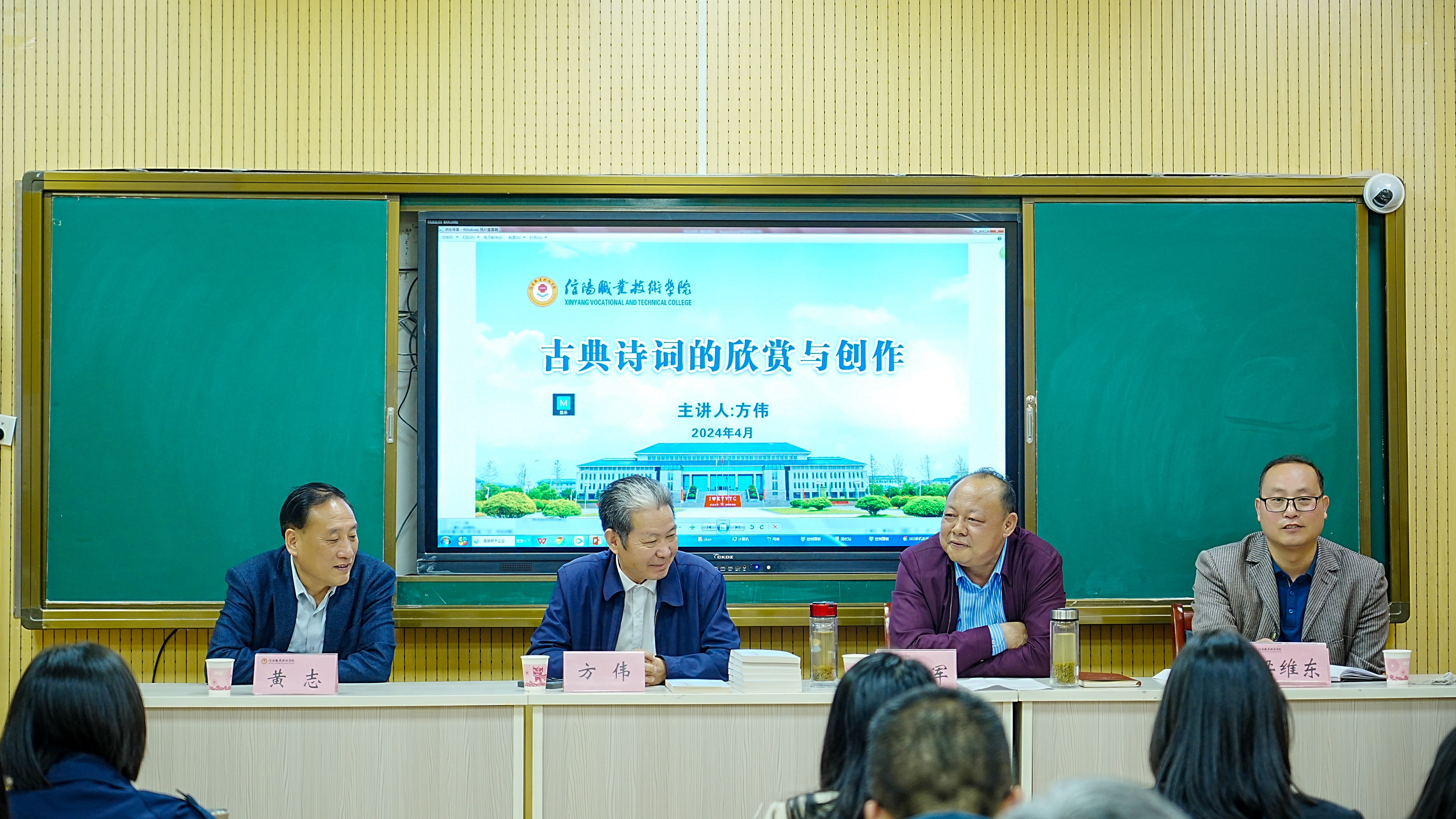 作为活跃在当代诗坛的学者诗人,方伟老师初心如磐、笔耕不辍。2020年世界读书日,其《濯缨诗词选》被《诗刊》作为优秀图书推荐。讲座中,他从当前国内外诗歌创作、作品及成就三个方面入手,细致分析了当代诗词现状,分享了“解剖归纳法”这一科学的阅读方法,提出了诗歌创作中掌握格律的重要性,并通过增加哲思理趣、尝试古体翻新等技巧写出新意。方伟老师时而旁征博引、时而动情地示范吟唱、时而引经据典与师生互动,获得现场阵阵掌声,大家深切地感受到了中国古典诗词的韵律美和艺术性。