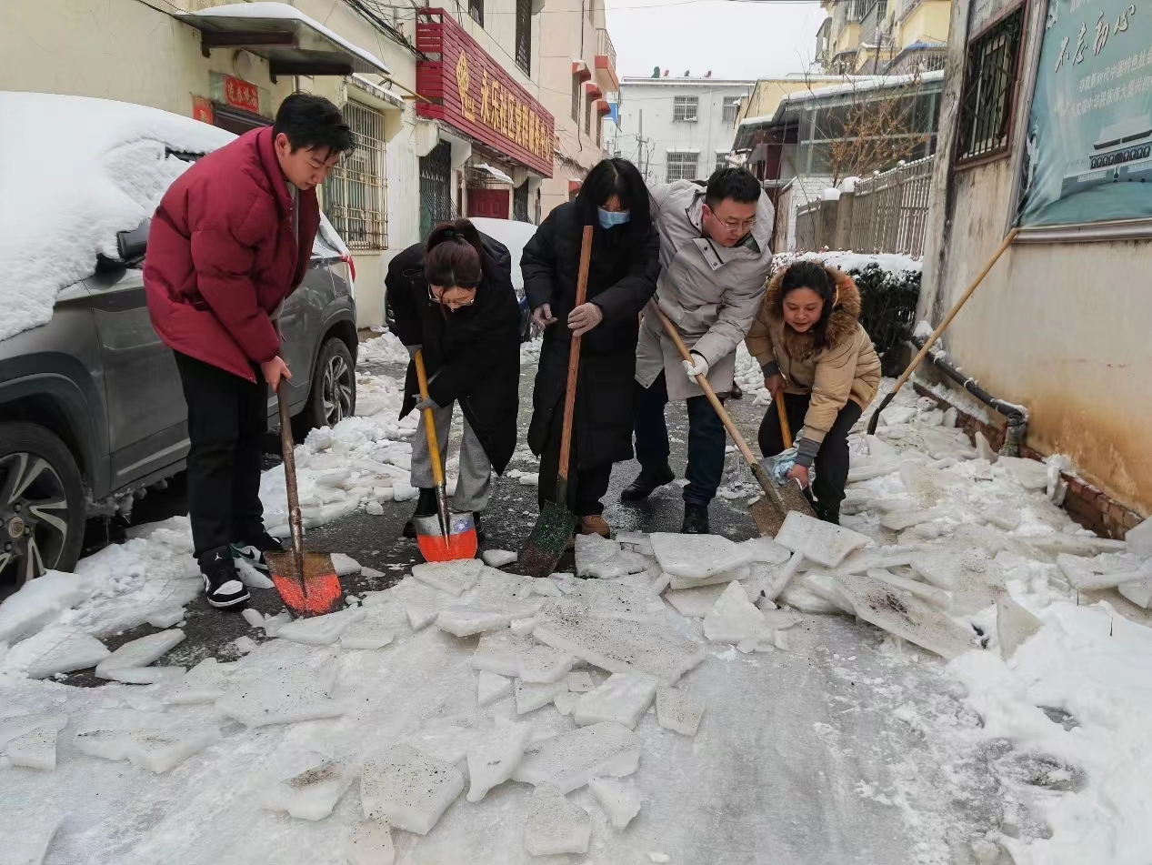 近日,我市遭遇大范围降雪降温,给群众的生产生活带来极大不便,"支部联支部”活动第四网格的澳门十大信誉好的网站党总支和团委党支部,积极响应组织号召,于2月6日上午深入楚王城永乐社区开展除雪破冰志愿行动。