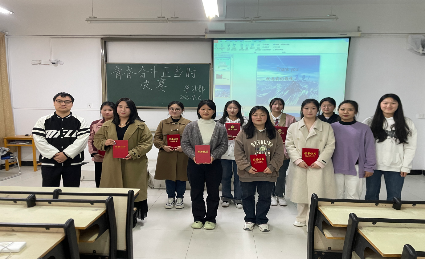 通过此次活动我们看到了同学们的坚定和勇敢,她们以自己的经历、见闻和心情,表达了对未来的憧憬和对人生的态度。她们用青春和激情,向大家展示了自己的魅力和才华。比赛旨在鼓励年轻人在学习和工作中保持积极进取的态度,努力拼搏,不断追求自我提升和完善,为实现自己的价值和成就做出贡献。生逢其时,重任在肩,作为新时代的我们,面对困难与挫折应学会在摸索中总结,将书中所学理论与开展实际工作相结合,亦要在新的环境下“学无止境”,为实现自己的梦想和目标而努力奋斗!