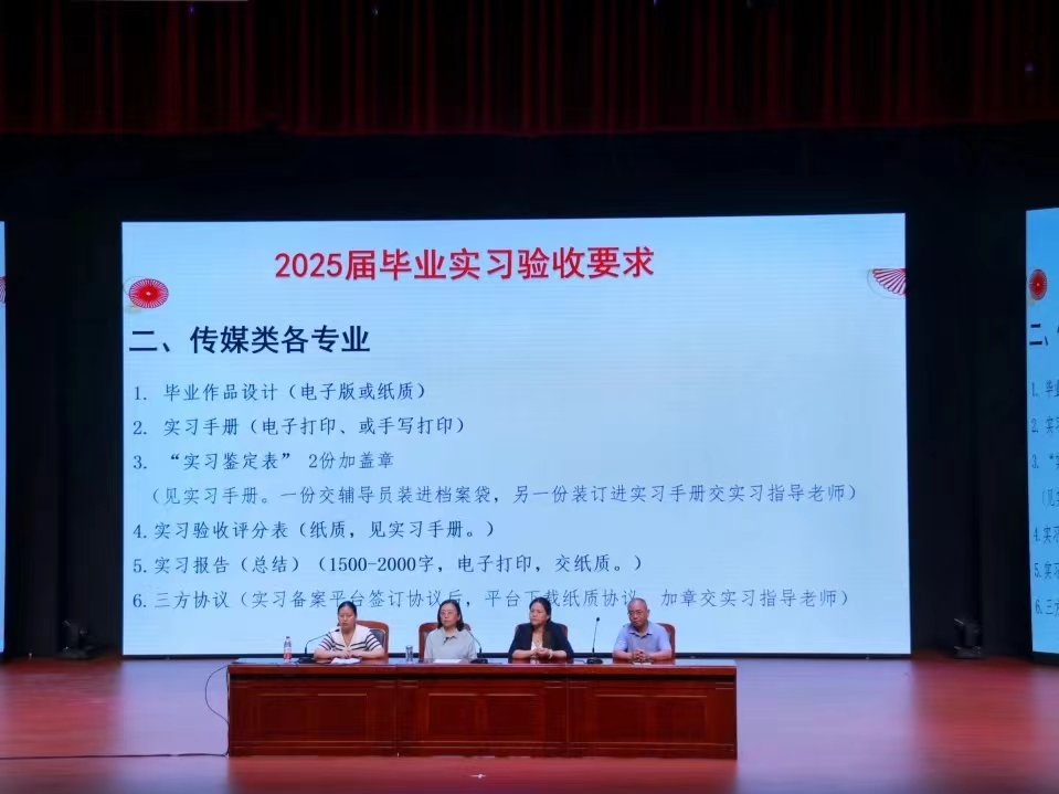 奋斗新征程,实习新起航。为积极响应国家政策,进一步做好毕业生实习工作,2024年6月6日下午,澳门十大信誉好的网站在图书馆报告厅召开毕业生实习动员大会,参加此次会议的有院长李萍,党总支副书记李秀林,副院长付玉成、蒋吉优,22级辅导员、班主任,22级全体在校学生以及20级五年制语文教育专业学生。