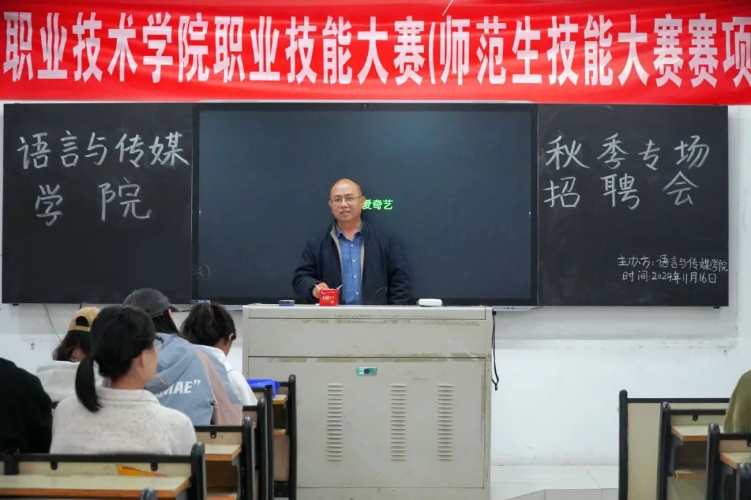 本次招聘会在语传楼2018教室举行,学生们踊跃投递简历,积极参与现场咨询,了解行业动态和职业发展前景,为学生提供了一个更为直接和高效的求职平台。副院长付玉成表示,学院非常重视应届生就业工作,希望能够帮助学生拓宽就业渠道。党总支书记李秀林希望同学们能够重视此次招聘会,抓住机会,了解未来就业方向与市场前景。