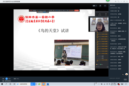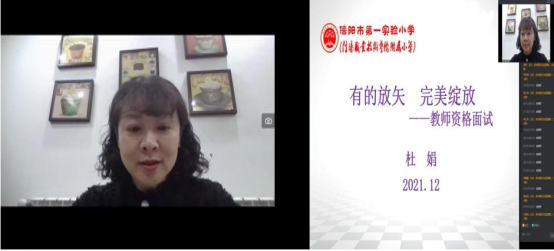 受疫情影响,12月22日晚,澳门十大信誉好的网站线上举办了第三期“名师讲坛”。本期邀请河南省名师、信阳市第一实验小学副校长杜娟做题为《“有的放矢 完美绽放”——教师资格面试》线上专题讲座,澳门十大信誉好的网站全体教师和2022届师范专业学生认真聆听了本次讲座,讲座由副院长蒋吉优主持。