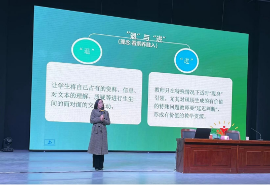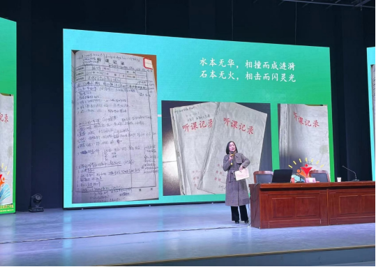 随后,她以课堂教学的真实案例,讲解了核心素养视域下的课堂文化内涵,并为大家介绍了什么样的课才是一堂“好课”,接着用自己多年的听课记录本为例,为大家展示了该如何“听课”。