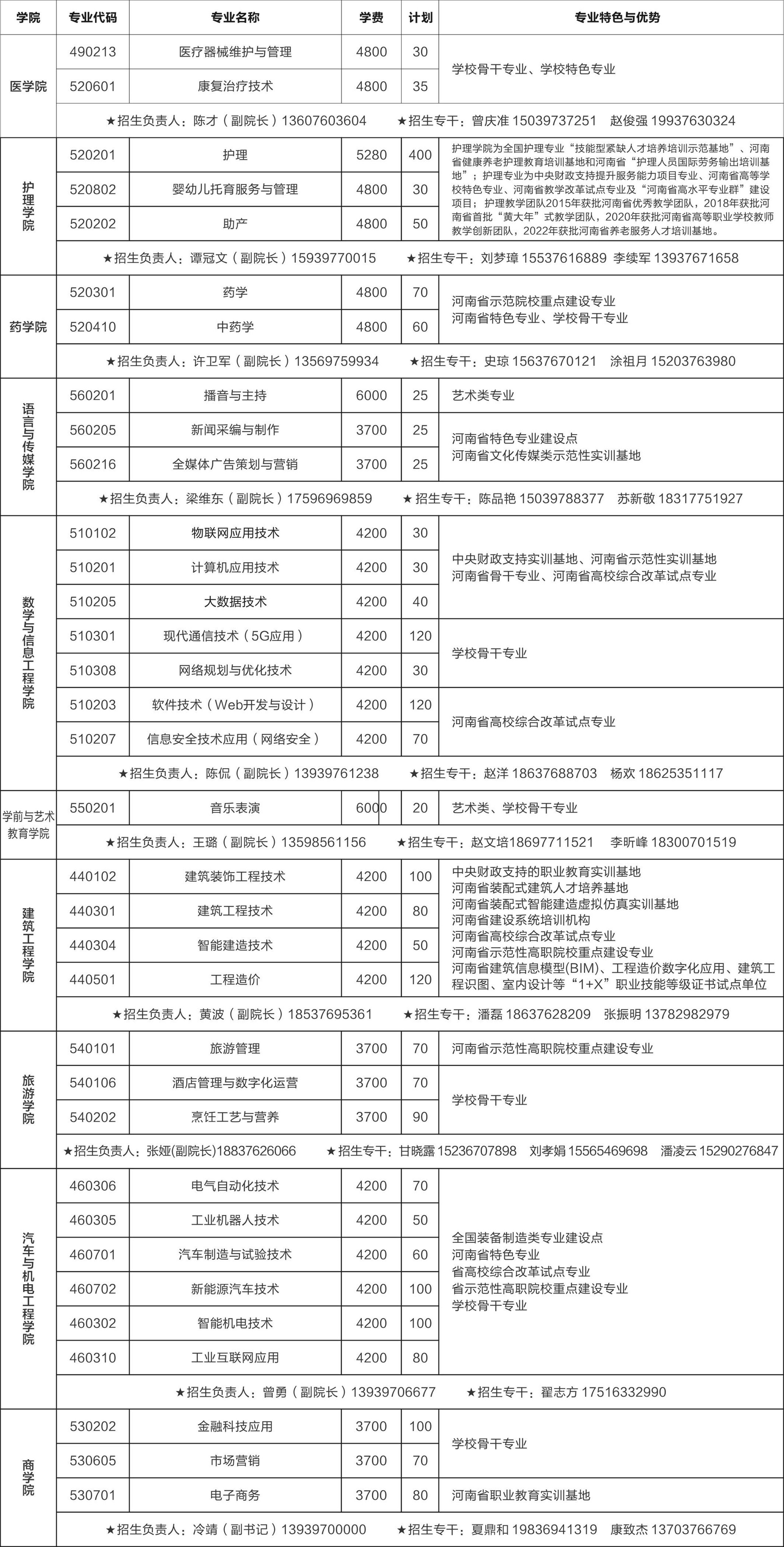 信阳职业技术学院2023年高职单独考试招生计划