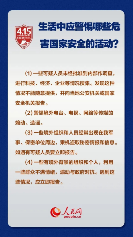2023年4月15日是我国第八个全民国家安全教育日。国家安全不仅关乎国家利益,也关乎每个公民的切身福祉。自觉关心、维护国家安全,是每个公民的基本义务,国家安全的真正实现有赖于人人参与、人人可为。