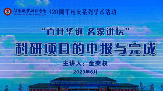 为迎接即将到来的信阳职业技术学院120周年校庆,2023年6月2日,信阳师范学院科研处副处长金荣权教授应邀为我校教师做科研项目申报讲座,会议由澳门十大信誉好的网站院长李萍主持。语言与传媒学院、旅游学院及相关学院部分教师参加讲座。