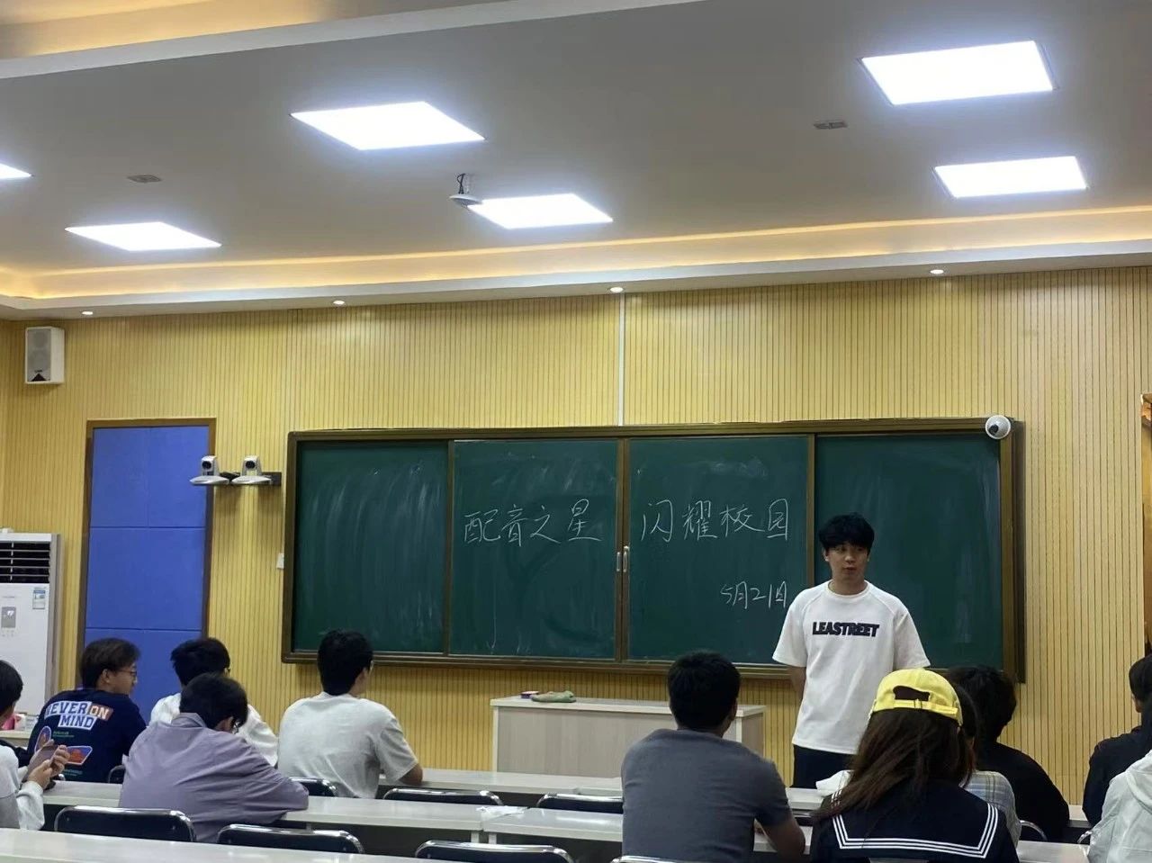 声动青春,音传热爱。为了提升社员的配音技巧与艺术表现力,普及配音文化知识。2025年5月21日,强声配音社在语传楼2010教室开展了以“配音之星,闪耀校园”为主题的配音活动。活动由配音社社长李明轩主持,他首先讲述了比赛规则、比赛环节以及比赛内容,随后宣布本次活动的正式开始。