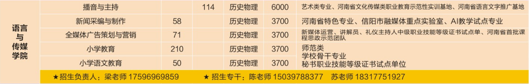 在人才培养上,语传特色鲜明,首先注重学科交叉,发挥厚重的人文积淀优势,培养有文化懂传媒能说会写的综合型人才。以师范类教育为基础,以文化传媒类专业建设为重点,辐射语文教育、小学教育、播音主持等专业,融专业教学、职业培训、技能鉴定和技术服务为一体,在豫南地区和河南省文化传媒类专业领域能起骨干示范和辐射作用。2024届毕业生中,有874名学生报名参加专升本考试,录取人数493人,录取率达到56.4%。